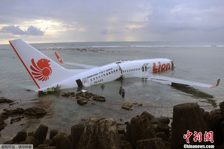 客机在巴厘岛机场冲出跑道落入海中 乘客全部获救