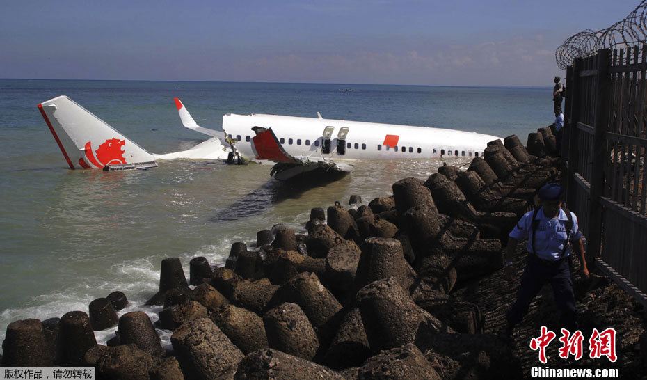 客机在巴厘岛机场冲出跑道落入海中 乘客全部获救
