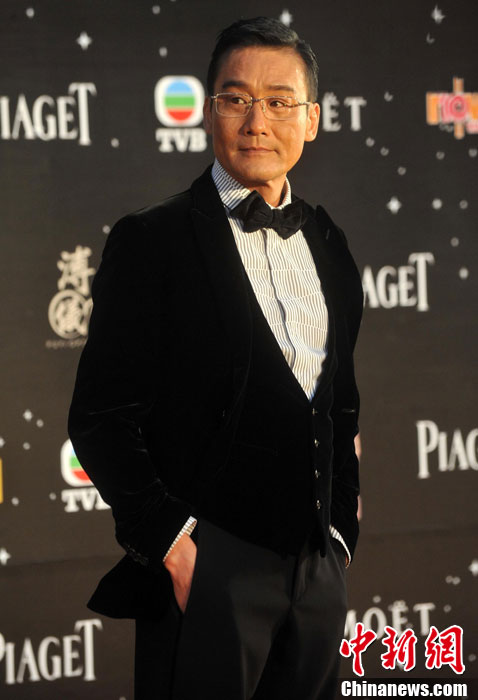 4月13日晚,第32届香港电影金像奖颁奖典礼于香港文化中心大剧院隆重举行。图为艺人梁家辉盛装亮相红毯秀。中新社发 邓庆乐 摄