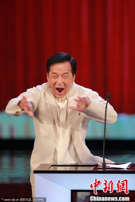 4月13日晚,第32届香港电影金像奖颁奖典礼于香港文化中心大剧院隆重举行。图为成龙上台领奖。图片来源:CFP视觉中国