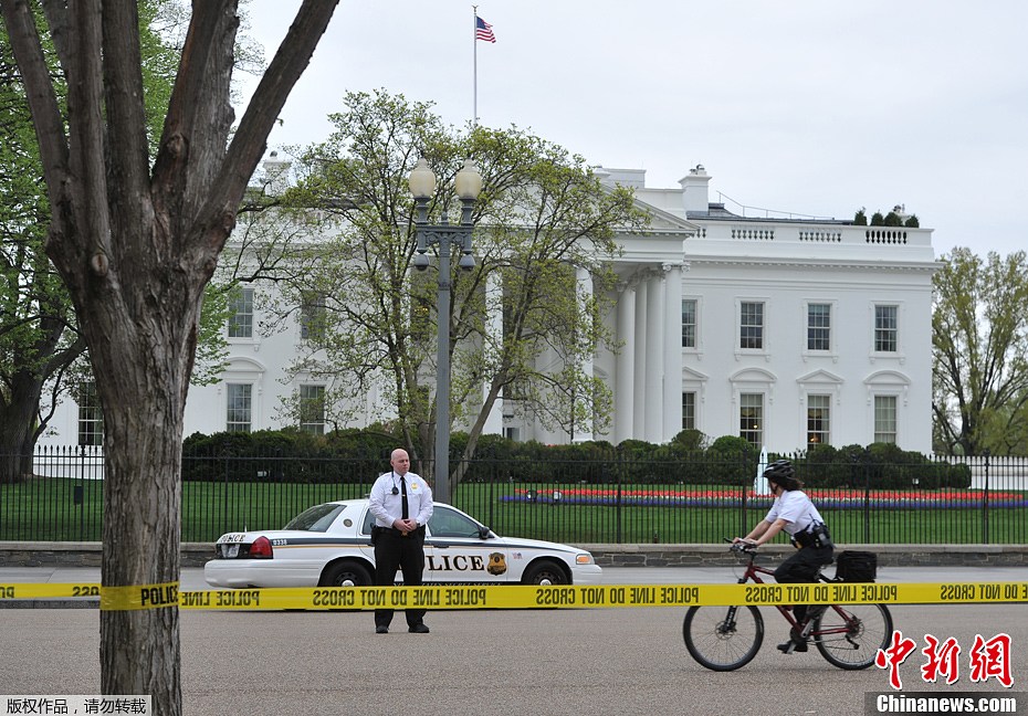 当地时间4月15日下午,波士顿马拉松比赛遭遇致命的恐怖爆炸事件,美国各大城市接到消息后,已经纷纷开始加强安全戒备。图为15日,美国白宫前警方拉起安全线。