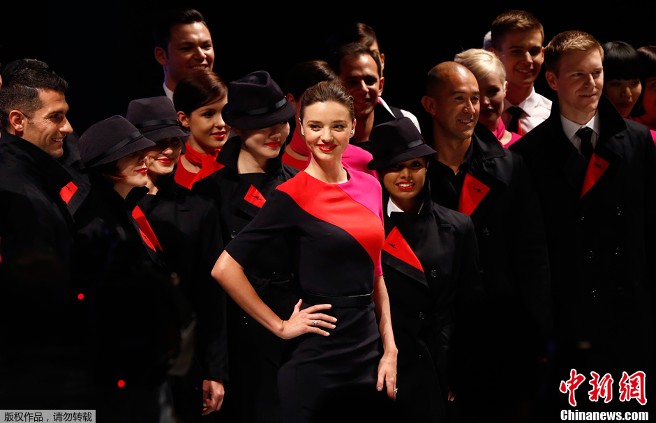 当地时间2013年4月16日,澳大利亚悉尼,澳洲航空发布了新的制服样式。图为靓模展示新制服。