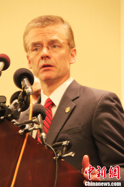 当地时间2013年4月16日,美国联邦调查局(FBI)高级探员Richard DesLauriers在通报波士顿爆炸案调查进展时称,恐怖袭击已成为爆炸案的调查方向,爆炸案是“恐怖主义行径”。波士顿15日举办马拉松比赛时遭遇爆炸事件,目前已经造成百余人伤亡。中新社发 李洋 摄