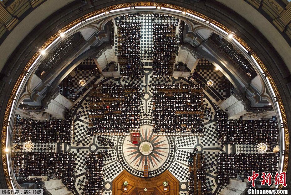 当地时间4月17日,英国前首相撒切尔夫人葬礼在圣保罗大教堂举行。图为葬礼现场。