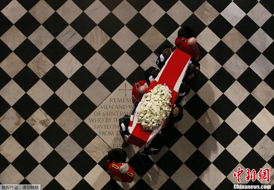 当地时间4月17日,英国前首相撒切尔夫人葬礼在圣保罗大教堂举行。图为葬礼现场。