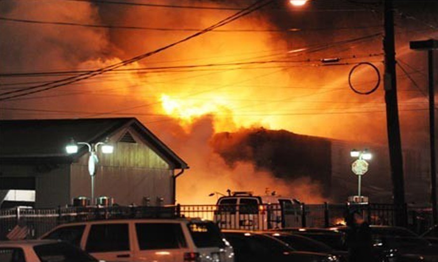 当地时间2013年4月17日,美国德克萨斯州一化肥厂发生爆炸,造成多人死伤。图为爆炸现场。图片来源:新华网