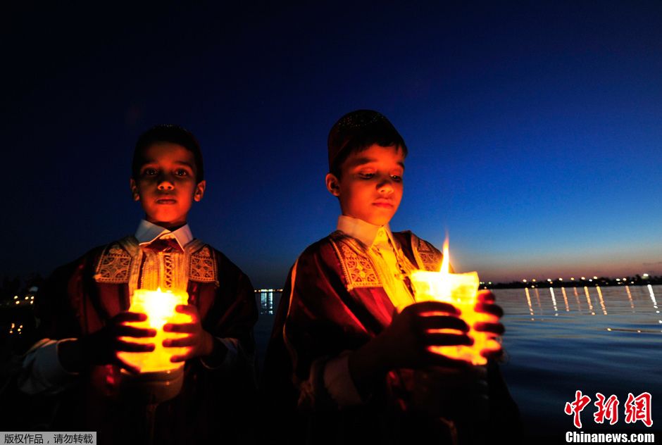 当地时间2013年4月18日,利比亚班加西举行狂欢节。图为手持蜡烛的男孩。