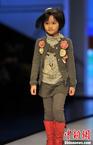 4月19日,2013石狮国际时装周上演可爱童装秀。图为小模特T台走秀,有模有样。吕明 摄
