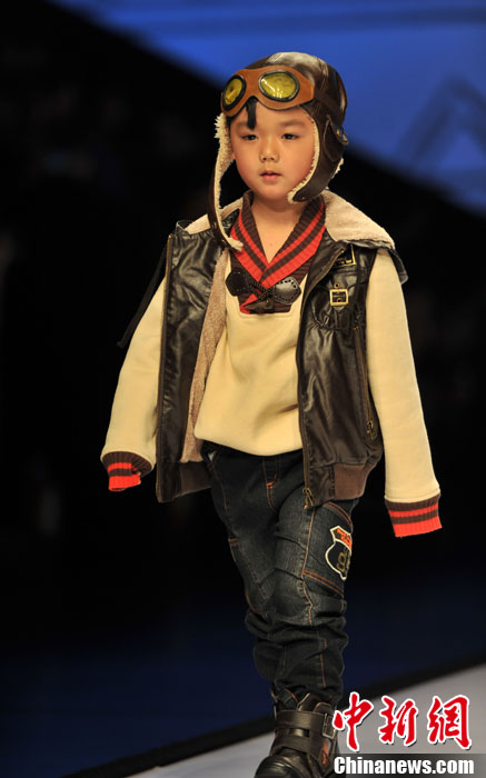 4月19日,2013石狮国际时装周上演可爱童装秀。图为小模特T台走秀,有模有样。吕明 摄