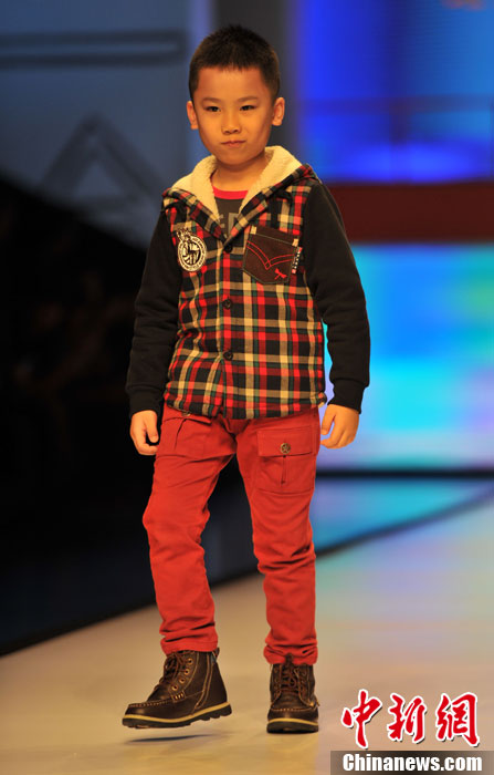 4月19日,2013石狮国际时装周上演可爱童装秀。图为小模特T台走秀,有模有样。吕明 摄