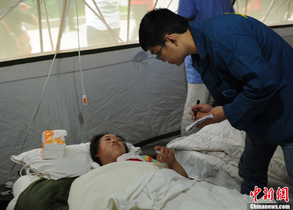 4月21日,芦山县人民医院内等待转院的地震重伤者。中新社发 刘忠俊 摄