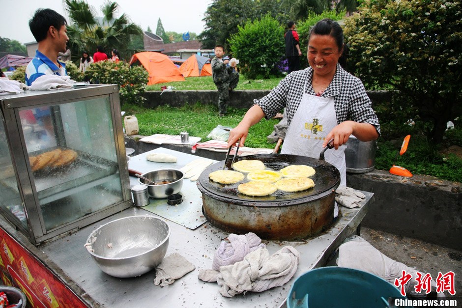 雅安市民乐观面对震灾——早餐摊点正常出摊