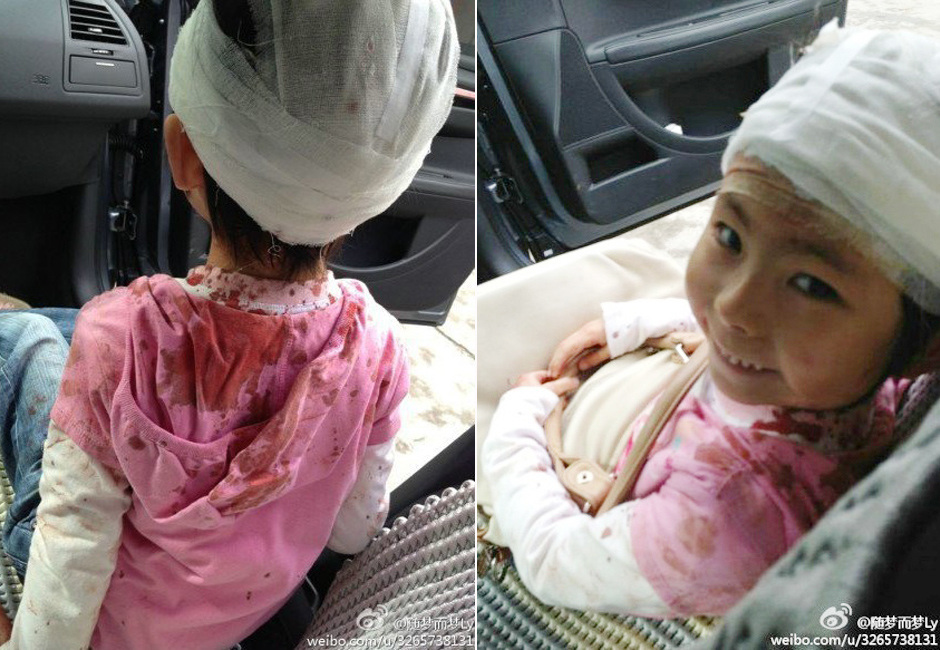 4月20日8时02分,四川雅安发生7.0级地震。一位网友通过微博表示,看到很多人受伤进医院。其中,一位受伤的小女孩表现坚强,尽管身上有血迹,但她微笑地说“我没事,我不哭,我很坚强”。图为来源:微博