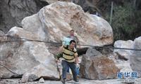 4月20日,宝盛乡群众运送矿泉水。江宏景 摄 图片来源:新华网
