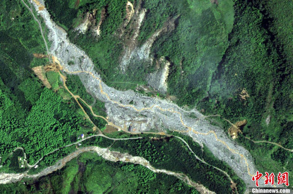 4月20日,海军“奖状”飞机拍摄的四川雅安上空航空遥感图像。中新社发 钟欣 摄