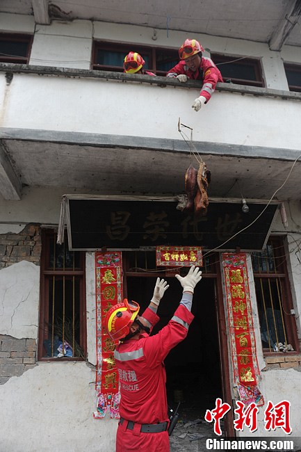 4月21日,中国国家地震灾害紧急救援队抵达四川芦山地震灾区,展开搜救,并帮助民众从地震中“夺回”被困物品。中新社发 张浪 摄