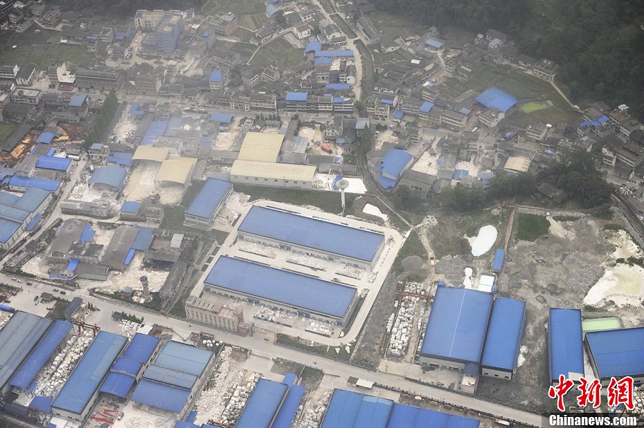 4月21日,记者随成都军区空军救援飞机前往地震灾区四川宝兴县,图为航拍宝兴地震灾区。中新社发 张浩 摄