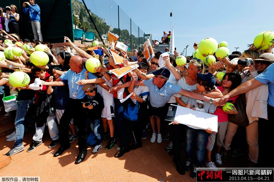 周二,摩纳哥,蒙地卡罗名人赛上,粉丝等待西班牙名将拉斐尔·纳达尔签名。