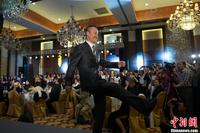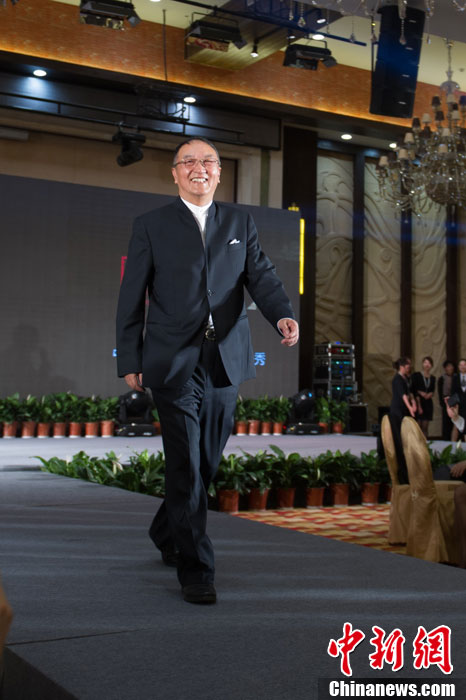 4月21日晚,柳传志、马云、王石等商界“大佬”齐聚昆明参加中国企业界可持续发展峰会,并上演了另类T台秀。图为柳传志。中新社发 刘冉阳 摄