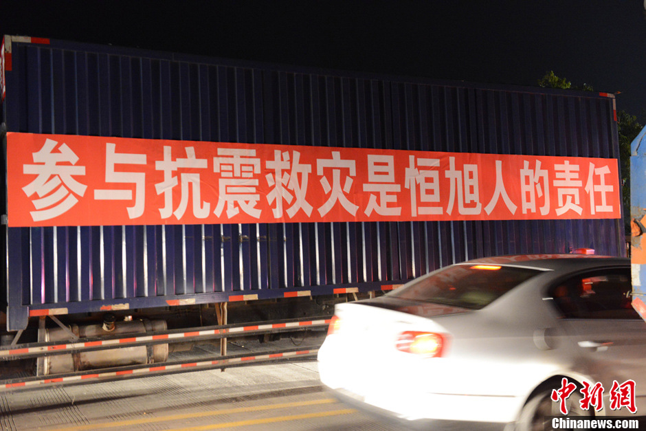 四川雅安震区的感动 车辆悬挂正能量标语
