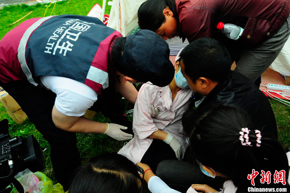 2013年4月21日,四川雅安芦山县,芦山县人民医院,一名护士由于长时间持续工作昏倒。于鹏 摄 图片来源:CFP视觉中国