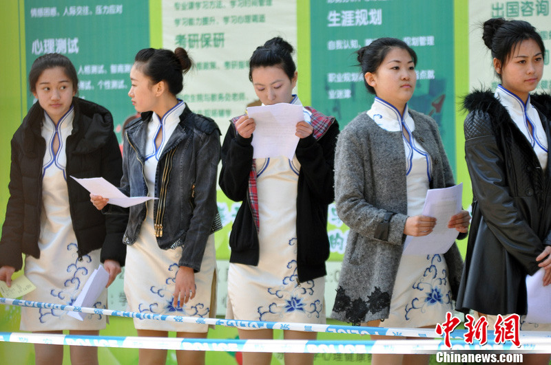 2013年4月21日,辽宁省沈阳市,第十二届全运会开闭幕式礼仪引导员面试场外聚集338名美女礼仪花絮,礼仪引导员素颜淡妆清新端庄楚楚动人。焉博 摄 图片来源:东方IC 版权作品 请勿转载