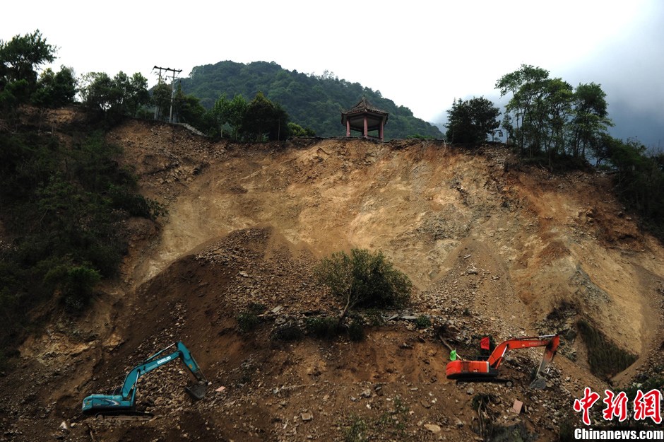 4月22日,地震灾区四川雅安市宝兴县城内多处又发生滑坡塌方。中新社发 陈超 摄
