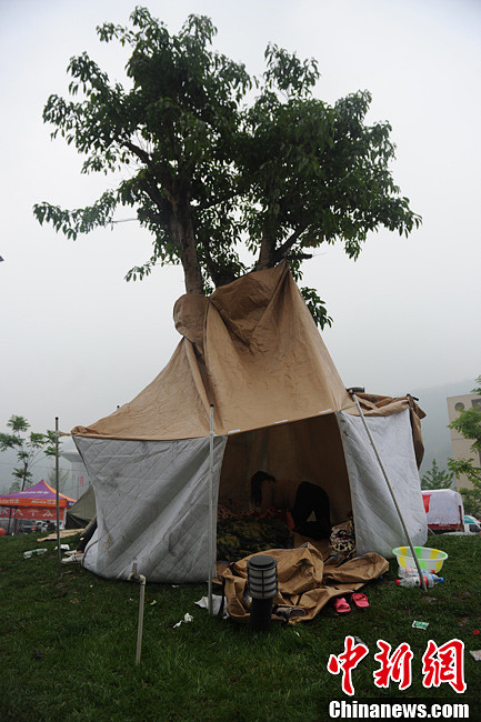 芦山“4·20”地震:以树搭建帐篷