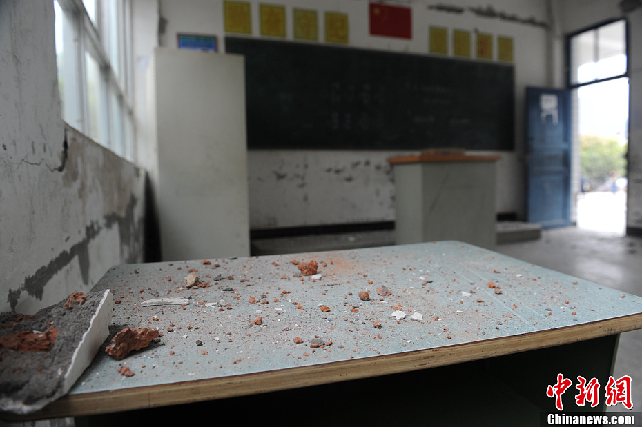 4月22日,雅安芦山双石小学在地震中严重受损,学校无法正常开课。中新社发 张浪 摄