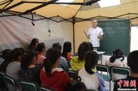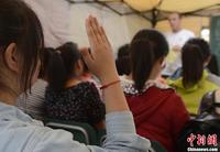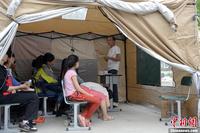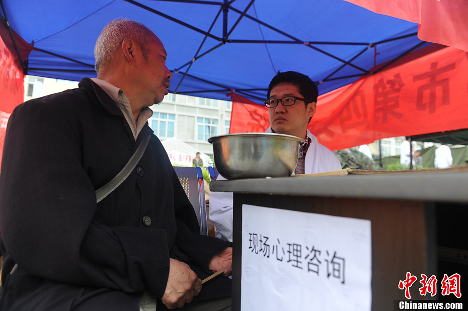4月22日,雅安芦山县城的心理咨询点接受免费咨询服务。中新社发 张浪 摄