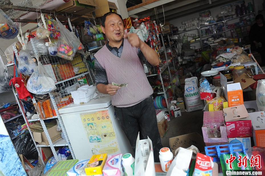四川芦山地震:杂货店老板冒险返回商店营业救急