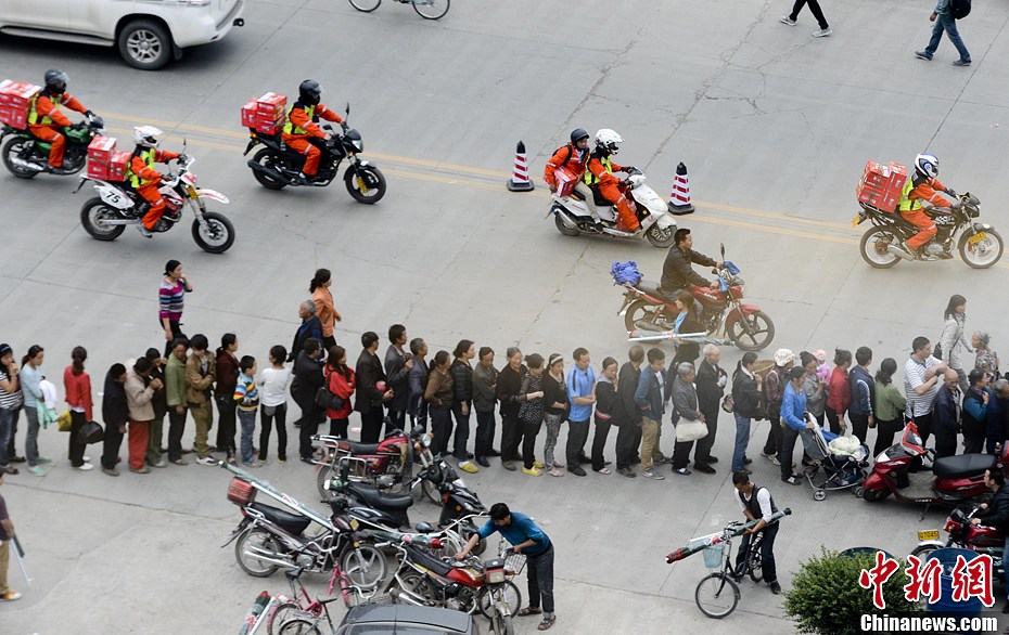 芦山灾民在稀缺资源前自觉排队