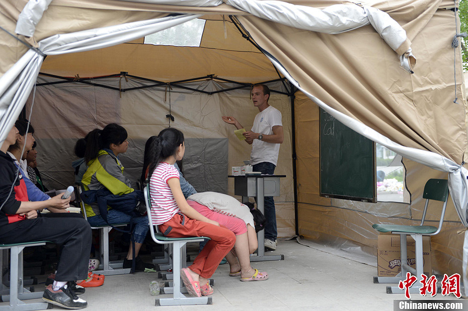 帐篷学校在芦山安置点开课