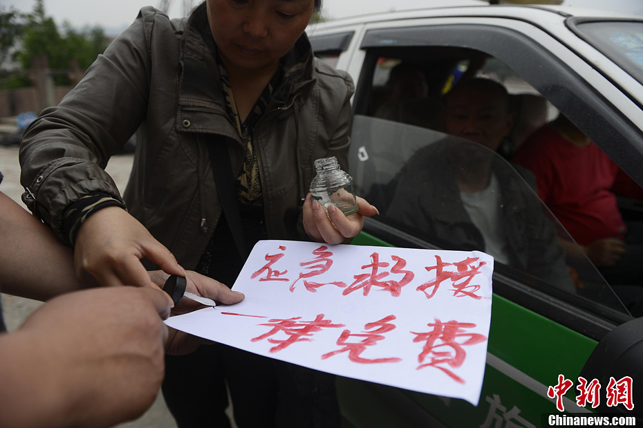4月22日,四川芦山地震灾区,出租车司机免费运营。廖攀 摄