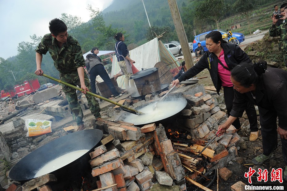 芦山地震灾区炊烟袅袅