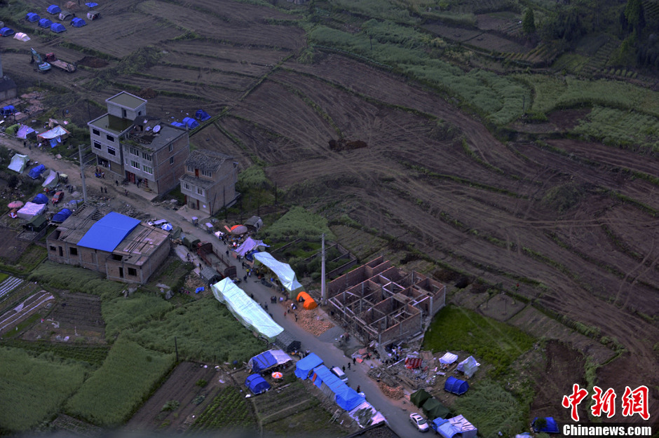 4月22日,成都军区十三野战军陆航旅抗震救灾英雄团的直升机组,试图增援四川雅安地震灾区受困严重的宝兴县,在浓厚的积雨云雾中冲击未果,飞临芦山县避难中心附近运送救灾物资后返航。贾国荣 摄