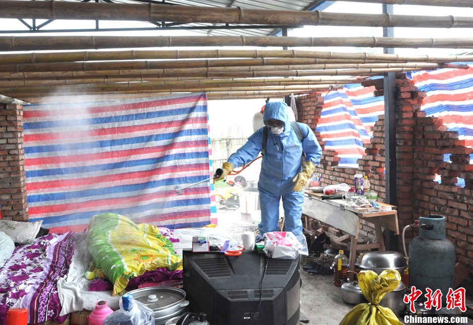 成都空军后勤部防疫队进村入户开展灾后防疫工作