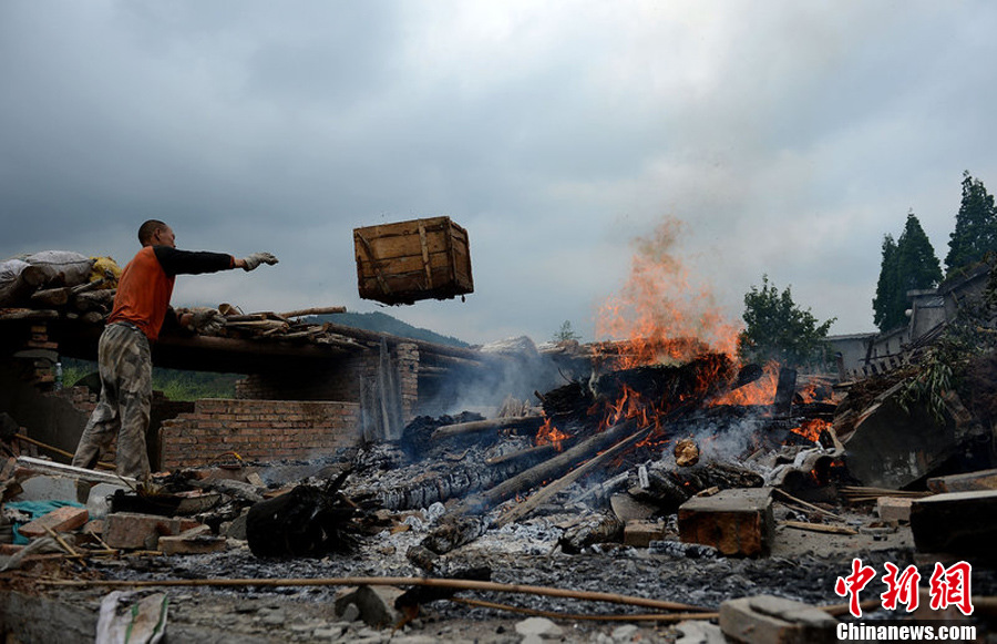 芦山地震废墟上的生活——居民开始清理废墟