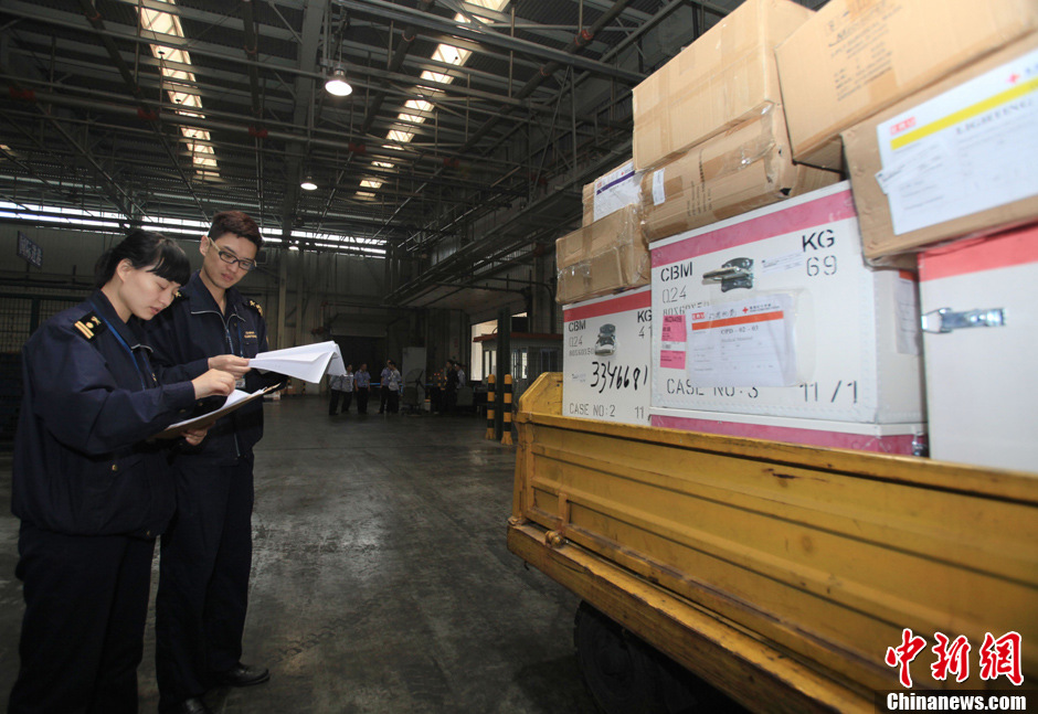 4月23日,成都海关快速验放了香港特别行政区红十字会医疗队发往芦山地震灾区的救援物资,含发电机、照明设备、通讯设备、生活用品、卫生设备等共计141箱,价值42.4万元港币。对该批救援物资,成都海关开辟“绿色通道”,指定专门人员单独受理,以应急方式办理该批货物的所有通关手续,物资先放行后再补正式报关手续。中新社发 许晖月 摄