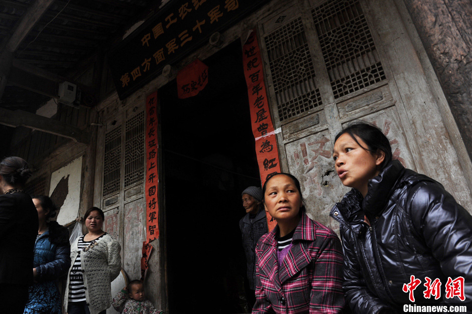 4月23日,四川芦山地震震中龙门乡一家四合院古建筑内,周边村民聚集于此,将这里当成了临时安置点。这座古建筑已有上百年的历史,在7.0级强震中几乎无损伤。中新社发 张浪 摄