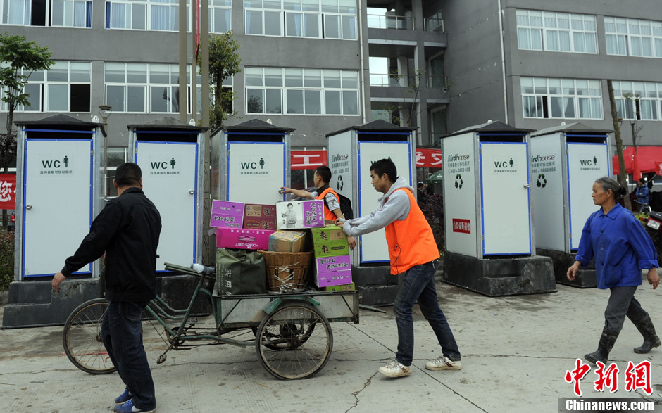 移动厕所陆续运抵芦山震灾区
