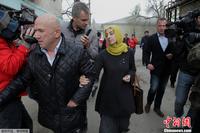 当地时间2013年4月23日,俄罗斯南部达吉斯坦,波士顿爆炸案两名嫌犯的母亲Zubeidat Tsarnaeva出门遭到围观。