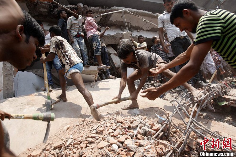 当地时间4月24日,孟加拉首都达卡郊区的一座八层建筑物倒塌。据路透社报道,截至目前事故已造成至少70人丧生,数百人受伤。消防队员和军队正在营救被困人员。建筑物内有一家制衣工厂和一座商业中心。当地警方负责人称,建筑物昨天出现裂缝,但业主没有理会不得让工人进入建筑物的警告。图片来源:CFP视觉中国