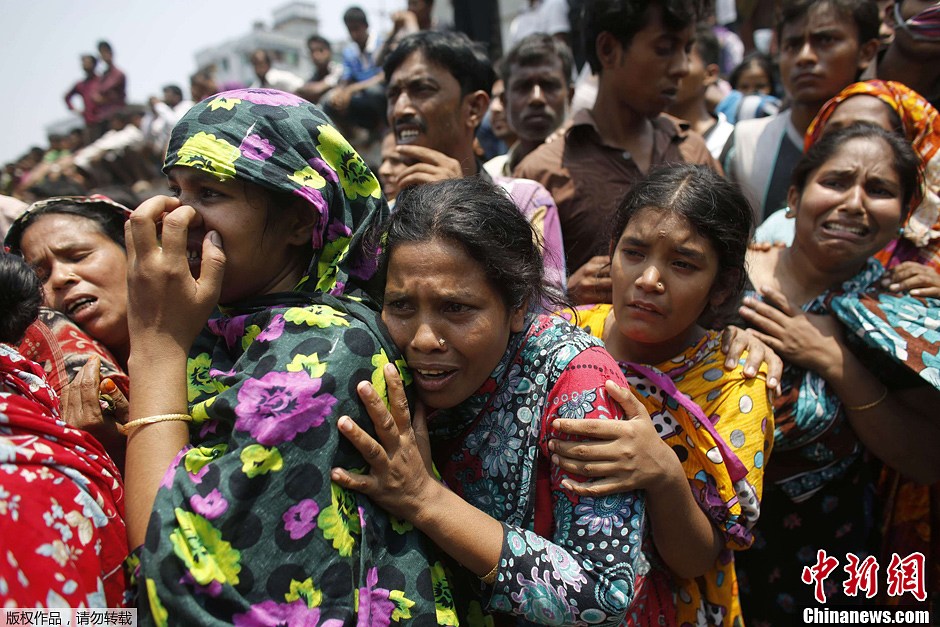 当地时间4月24日,孟加拉首都达卡郊区的一座八层建筑物倒塌。据路透社报道,截至目前事故已造成至少70人丧生,数百人受伤。消防队员和军队正在营救被困人员。建筑物内有一家制衣工厂和一座商业中心。当地警方负责人称,建筑物昨天出现裂缝,但业主没有理会不得让工人进入建筑物的警告。图为被困人员家属焦急等待着信息。