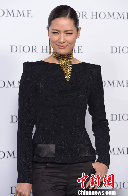2013年4月25日晚,DIOR男装2013秋冬系列发布会在北京举行。黄晓明、邓超、韩庚、佟大为夫妇、张歆艺等众星到场助阵,红地毯星光熠熠。图为名模、设计师马艳丽。中新社发 李学仕 摄