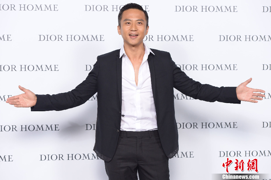 2013年4月25日晚,DIOR男装2013秋冬系列发布会在北京举行。黄晓明、邓超、韩庚、佟大为夫妇、张歆艺等众星到场助阵,红地毯星光熠熠。图为邓超。中新社发 李学仕 摄