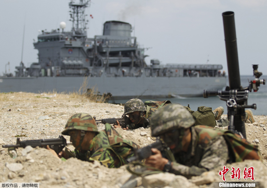 4月26日,韩国浦项,韩美两国举行联合登陆作战演习。