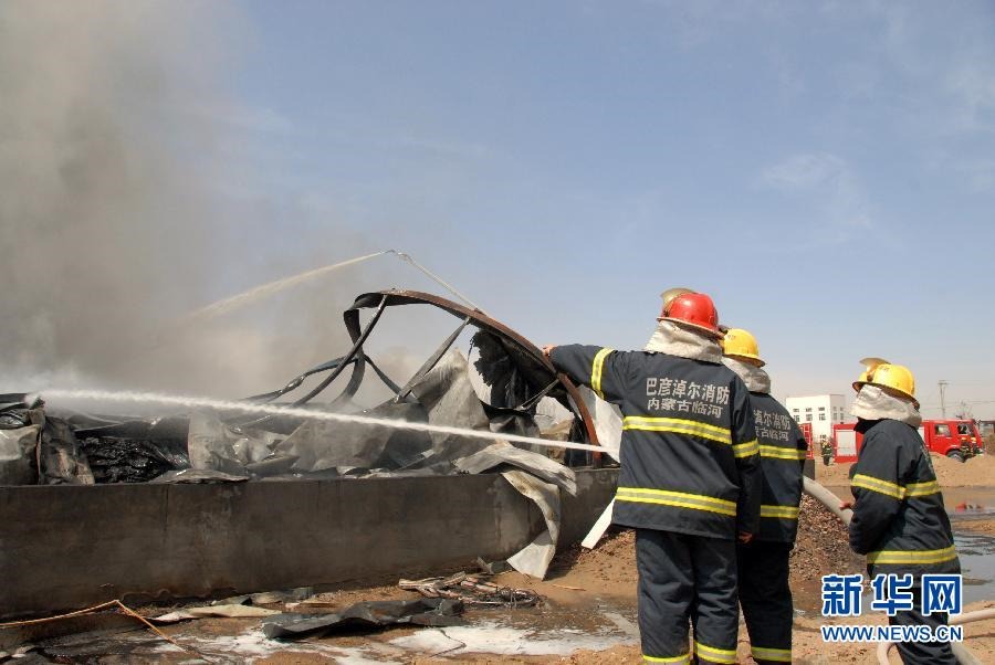 图为4月27日,消防官兵在火灾现场灭火。当日8时40分左右,内蒙古自治区巴彦淖尔市磴口县的德正化工厂发生大火。目前,当地已调集消防、公安、林业等多个部门参与灭火。厂区的工人和周围的居民已经疏散,还没有接到人员被困或伤亡的报告。截至27日14时30分左右,火灾已得到有效控制,明火已经扑灭。新华社发 刘锁林 摄 图片来源:新华网