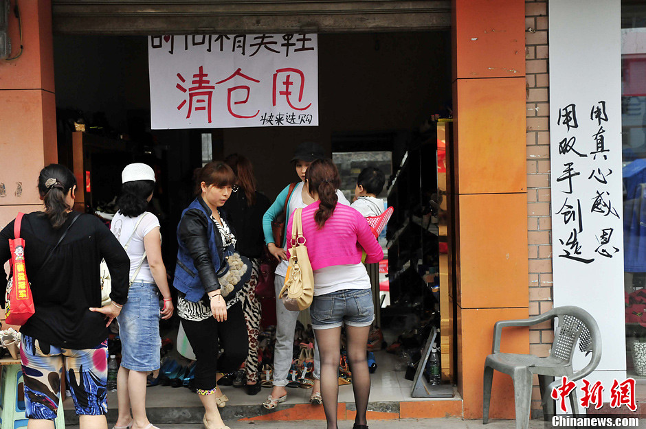 4月28日,重灾区芦山县的十字路口逐渐恢复往日的“繁华”。强烈的七级地震吓跑了十字路口附近的商贩,只留下一片站立的废墟。震后第九天,菜摊、水果摊、小百货店、卤菜档、副食品摊等分布于十字路口的四周,来往的人群让这个曾经繁华之地渐聚人气。图为芦山居民正在选购商品。安源 摄