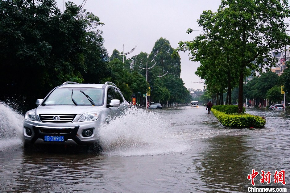 暴雨侵袭广西钦州 多路段现“水浸街”